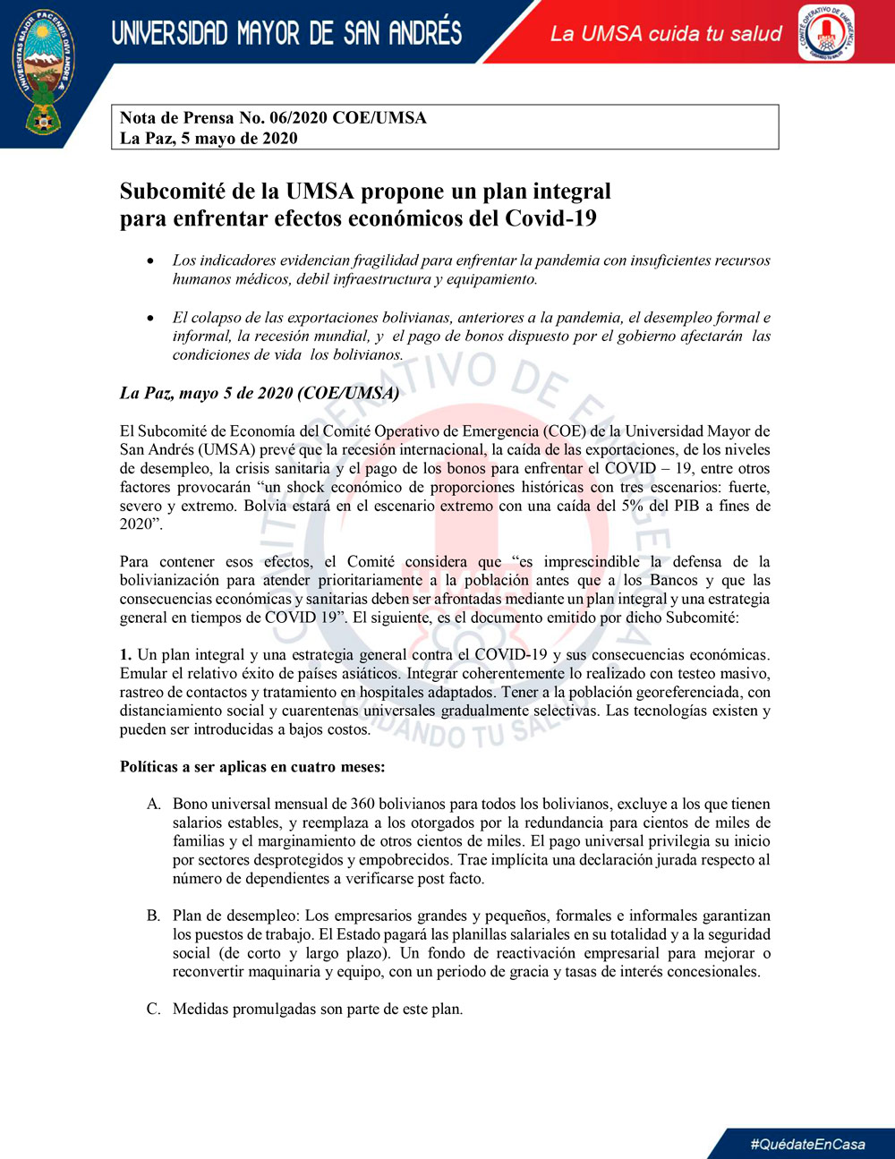 (La UMSA). Los indicadores evidencian fragilidad para enfrentar la pandemia con insuficientes recursos humanos médicos, débil infraestructura y equipamiento.