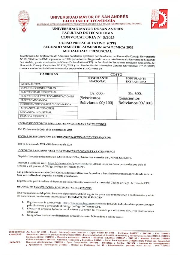 CURSO PREFACULTATIVO FACULTAD DE TECNOLOGÍA I-2024